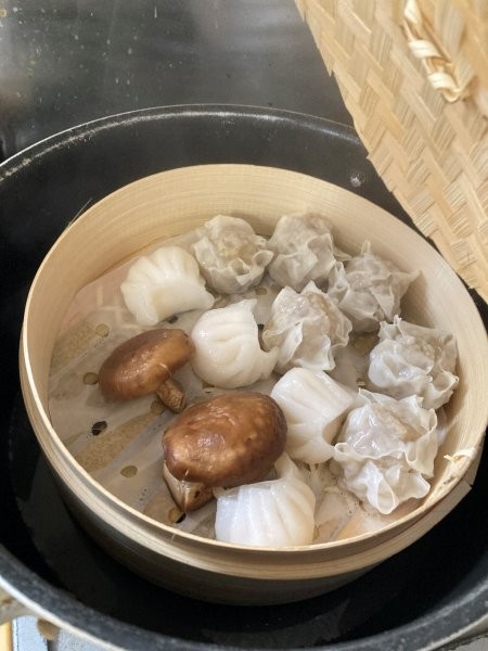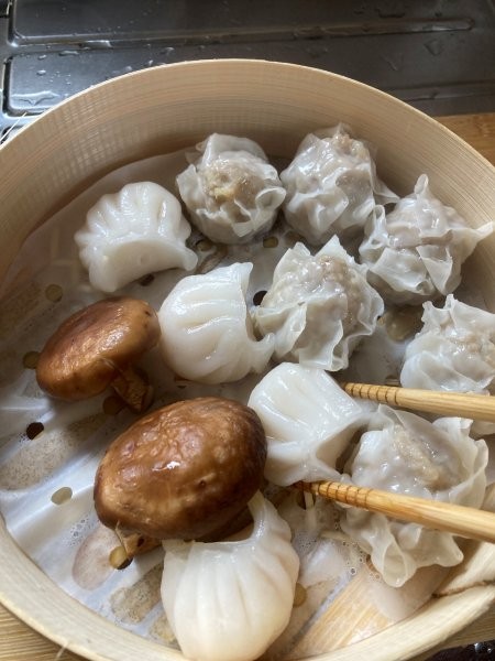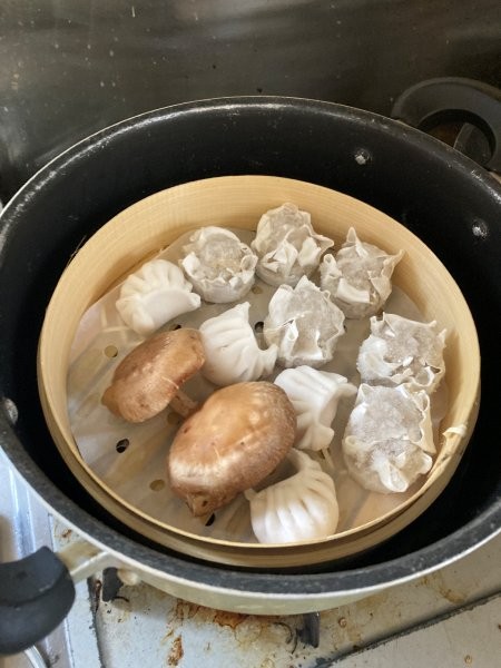 ↓冷凍シュウマイとエビ餃子とシイタケで試してみます。