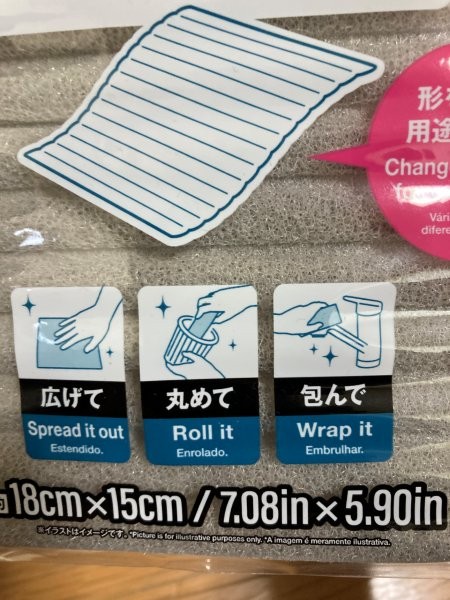 ↓広げたり、丸めたり、包んだり、できるので普通のスポンジより使いやすいんじゃないでしょうか。