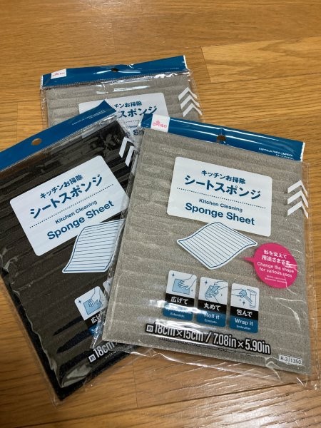 ダイソーで売っていたキッチン用のシートスポンジを買って使ってみました。