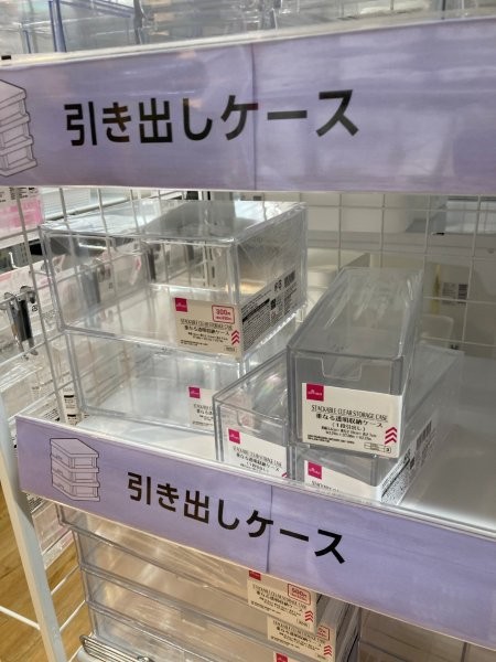 掃除に合わせて整理棚を買って少し模様替えをしているんですが、整理用に引き出しケースがないかなと、ダイソーに行ったとき探してみました。