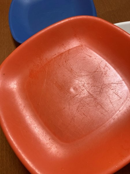 ↓ちなみに、こちらが昔ダイソーで買ったプラスチック皿です。2枚で100円だったんですよね~。今思えば破格のお値段でした。