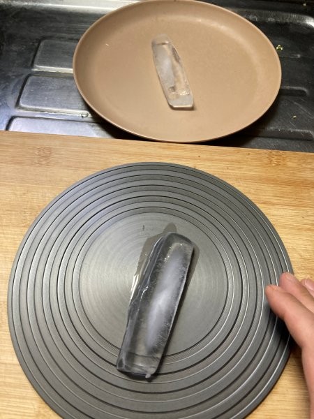 ↓解凍プレートの方はあっという間にビショビショに、、おもろっ!