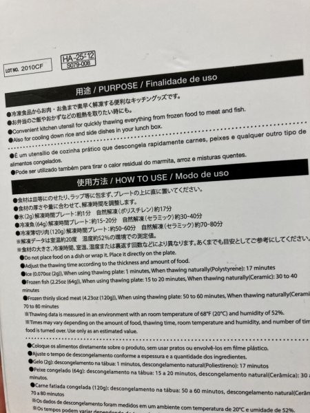 ダイソーで売っていた解凍プレートを買って使ってみました。