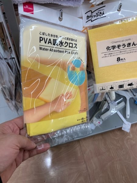 PVA吸水クロスというのは、ポリビニアルアルコールという素材を主成分としたクロスで、非常に吸水性が高い特徴があるんだそうです。